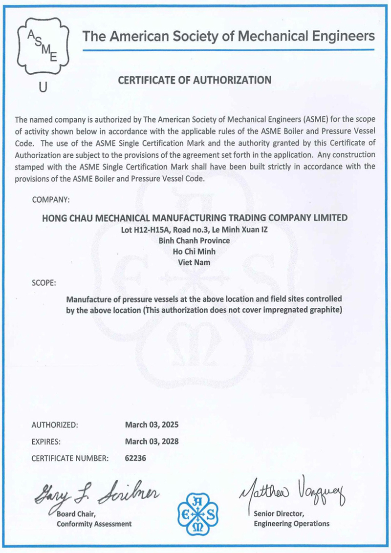 CHỨNG CHỈ ASME